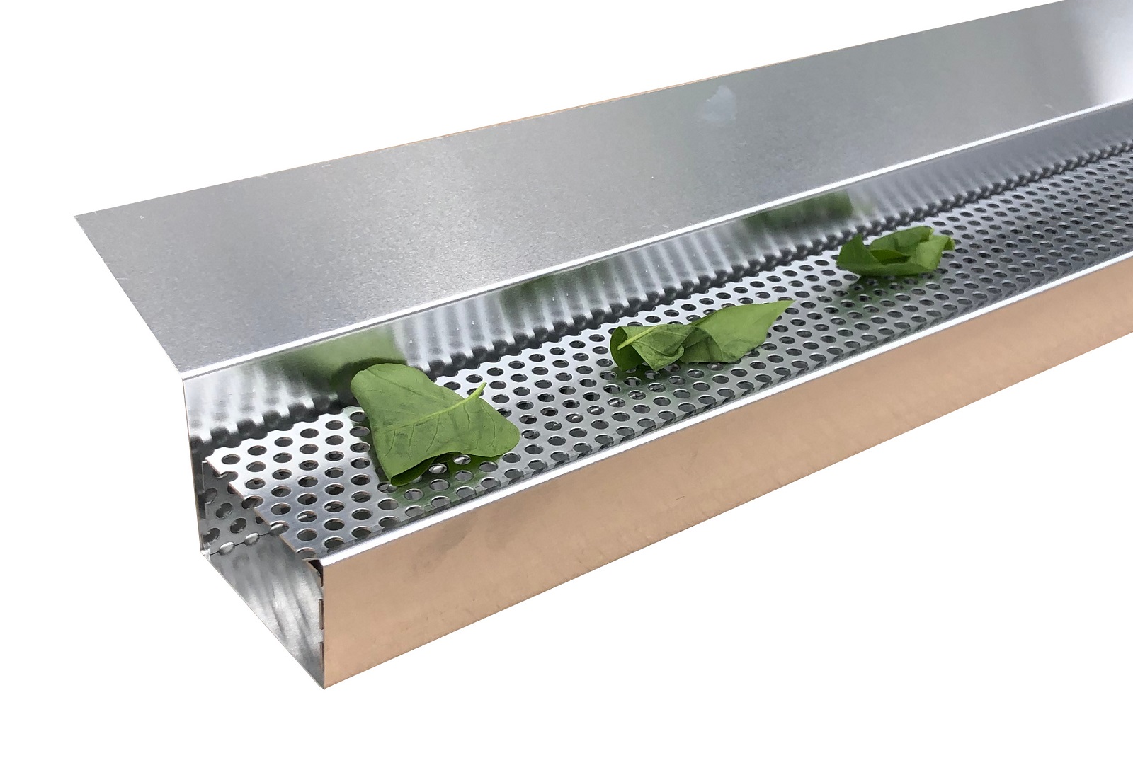 Mobile Preview: Kastendachrinne Simpel 2 Meter Aluminium Natur incl. Montagematerial und Laubschutz Aluminium