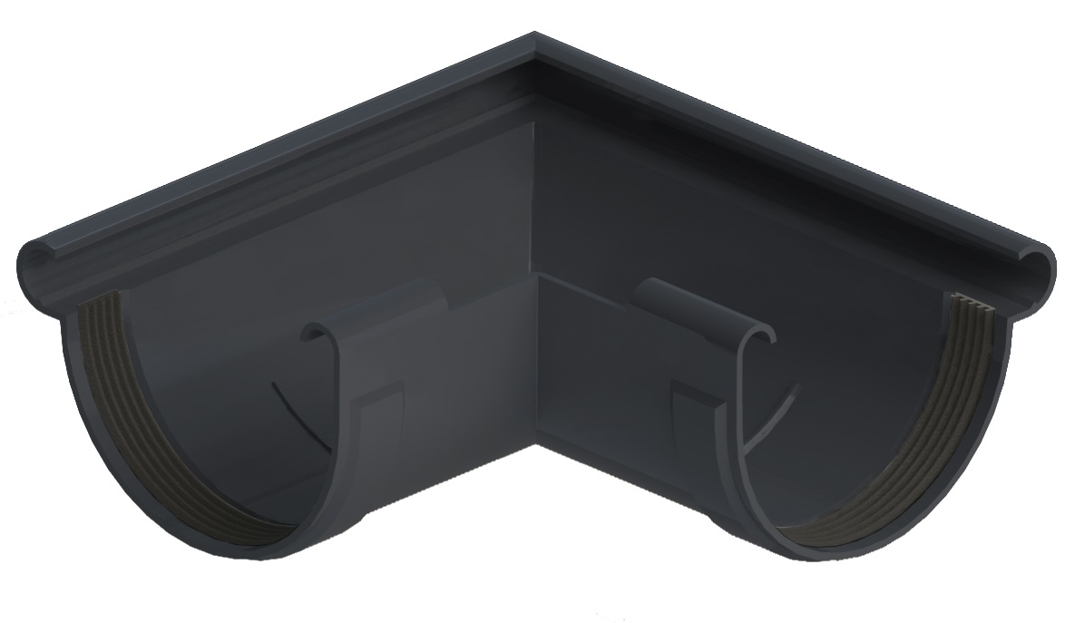 Rinnenwinkel anthrazit wird als Verbindung von Dachrinnen um die Dachfläche verwendet. Der Rinnenwinkel und die Dachrinnen werden einfach zusammengesteckt. Durch die innenliegende Spezialdichtung kann alles gesteckt werden und es ist kein Kleben notwendig.